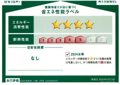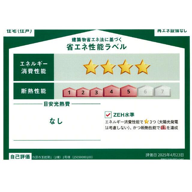 | エネルギー消費性能 | ★★★★(削減率30%達成) | 断熱性能 | 5段階/7段階中 |